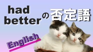 助動詞had betterを解説!否定語notの語順に注意!関連問題もあり【英文法】 今回はhad betterについて学びましょう。 授業でもテストでも頻出のhad betterですが、実際には上から目線の言い方になってしまうので通常の会話ではあまり使わない表現です。 テスト対策のためにしっかり理解していきましょう。最後に...2020.12.24助動詞
