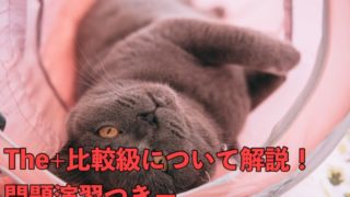 比較The+比較級について解説!問題演習つき!【英文法】 こんにちは。今回はThe+比較級について解説していきます。 これまで学習してきた比較の単元では『最上級にTheをつける』ということは習ったと思いますが、今回は比較級にTheがつくパターンです。 例外的な内容になるため、普通の比較級というより...2020.11.30比較