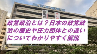 政治政党政治とは?日本の政党政治の歴史や圧力団体との違いについてわかりやすく解説【政治第25回】 今回のテーマは、政党政治です。本記事では、政党政治の目的や種類・日本の政党政治の歴史・戦後日本の政党政治の特徴・政党と圧力団体の違いを解説しています。初学者向けにわかりやすく解説しているので、最後まで読んでみてください。2022.12.14政治