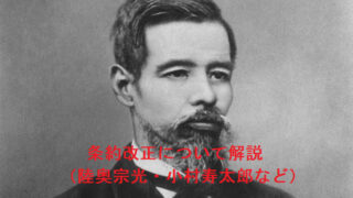 近代条約改正について解説(陸奥宗光・小村寿太郎など)【日本史第67回】 今回は条約改正交渉について解説します。 井上馨外務大臣が行った極端な欧化主義政策に始まり、陸奥宗光のもとで調印された日英通商航海条約の主な内容・関税自主権の回復までを取り扱いました。 最後には語呂合わせや入試問題も用意しているので、ぜひ最後...2021.09.23近代