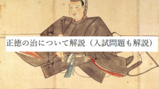 近世正徳の治について解説(入試問題も解説)【日本史第50回】 今回は正徳の治について解説していきます。 正徳の治とは、6代将軍徳川家宣・7代将軍徳川家継の時代に新井白石を中心に行われた政治のことを指します。 この記事では、正徳の治で行われた取り組みについて紹介するだけではなく、語呂合わせや入試問題も用...2021.03.19近世