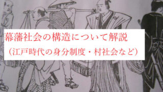 近世幕藩社会の構造について解説(江戸時代の身分制度・村社会など)【日本史第48回】 今回は身分関係と村(ムラ)社会の構造をメインに解説していきます。 キーワードは士農工商・田畑永代売買の禁です。 この範囲は大学入試では多く出題されるものの、意外と盲点になっている分野なのでこの記事を通してしっかりと重要項目をマスターしていき...2021.03.16近世