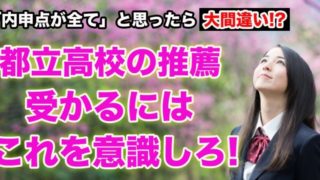 推薦入試都立高校の推薦入試で受かる方法と合格者の特徴 みなさん、こんにちは。今回は【高校都立入試の推薦】について実際に合格したK.Mさんからの寄稿です。 私自身が都立高校を推薦入試で合格しました。その経験から私は、「都立の推薦入試合格は内申点が全てではない」と実感しました。 推薦入試で合格する...2020.11.08推薦入試