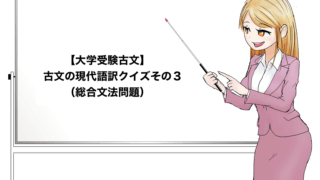 入試によく出る古文問題【大学受験古文】古文の現代語訳クイズその4(総合文法問題) みなさん、こんにちは。今回も古文の現代語訳の問題のコーナーです。現代語訳編も第4回となりました。古文の短文にそろそろ慣れてきた頃でしょうか?とにかく、古文の読解はなるべく多くの問題に慣れることです。 古文の現代語訳の第三回は「【大学受験古文...2019.12.19入試によく出る古文問題